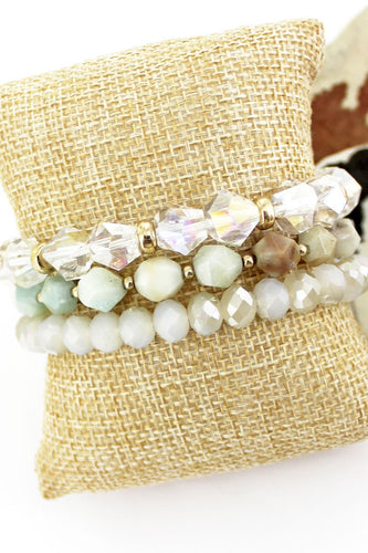 Mint Star Cut Stone and Glass Beaded Bracelet Set