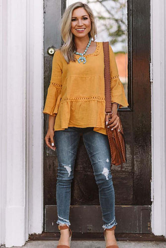 Magnolia Mustard Crochet 3/4 Flared Sleeve